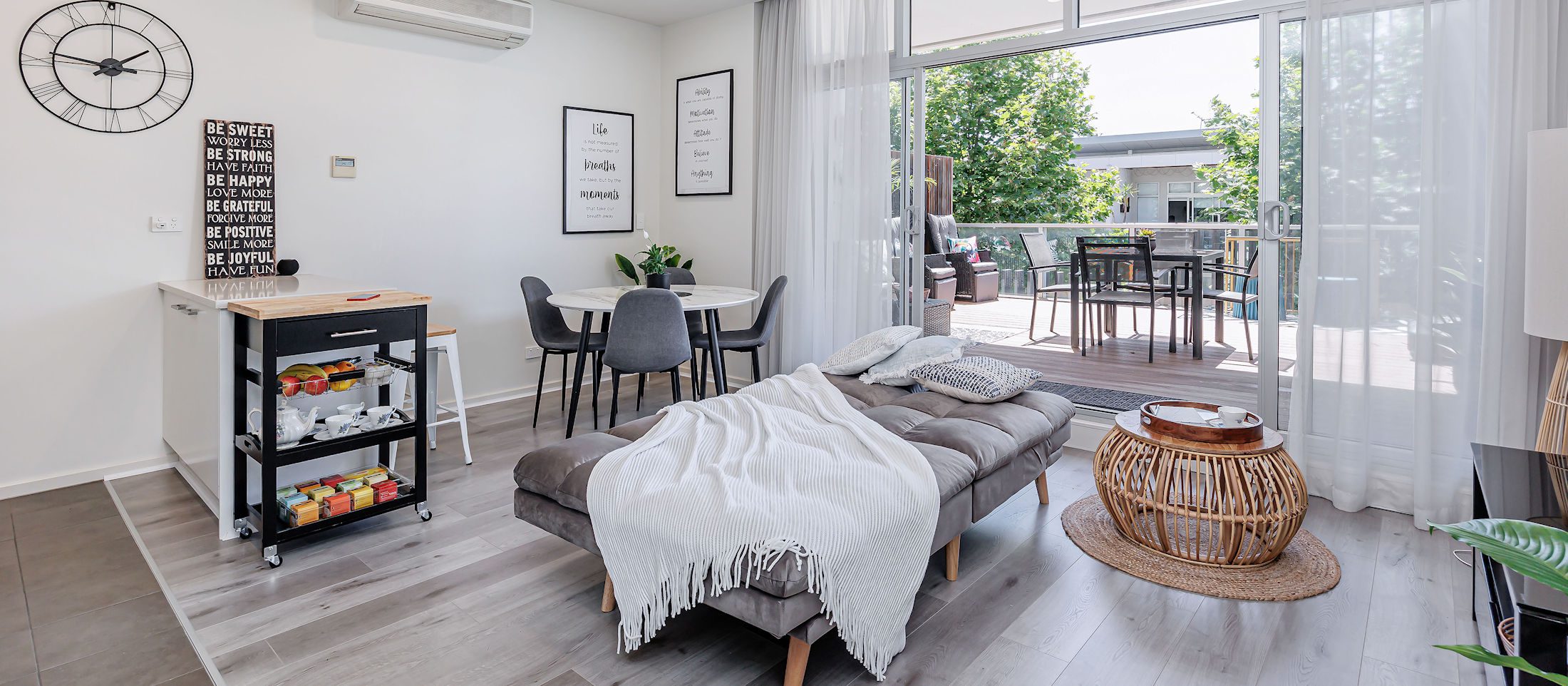 Experience a luxurious yet affordable retreat at Zen Waters. Feel the serene energy in our apartment and Balinese terrace. Unwind, enjoy our Relaxation Bar, teas, pool, gym, spa, sauna, and more nearby. Discover Adelaide’s hidden gem with access to a health club steps away. Encounter local dolphins and seals by the marina.